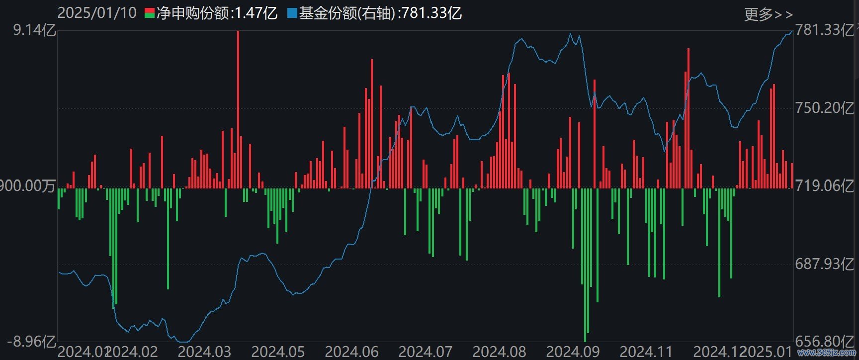 值得注意的是,本周科创芯片概念股寒武纪股价创历史新高,科创50ETF也逆势走强,而部分资金选择落袋为安,基金份额再度出现回落。