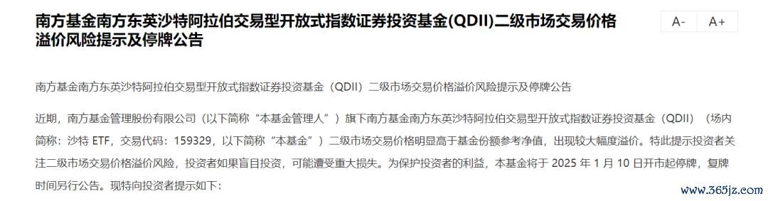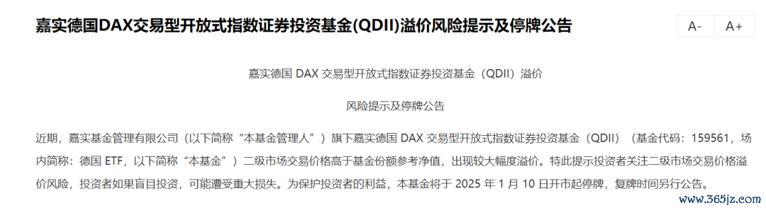 此外,国泰标普500ETF、南方基金南方东英沙特阿拉伯ETF、嘉实德国ETF均发布了类似的公告,宣布停牌。