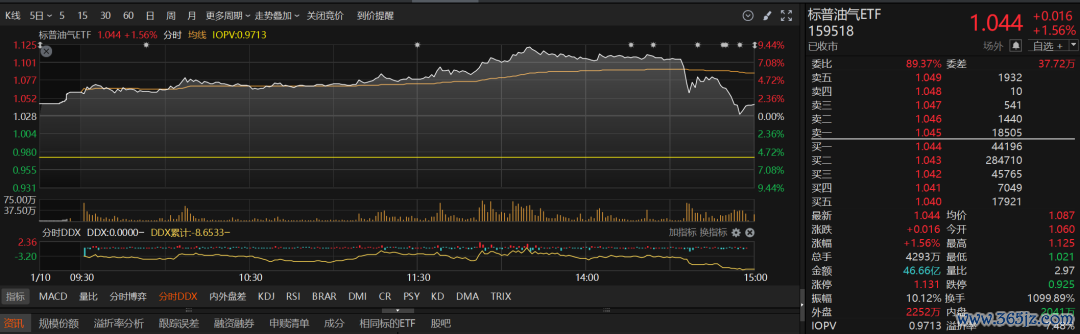 1月10日,嘉实标普油气ETF涨幅一度超过9%,最终收涨1.56%。资金博弈激烈,换手率达到1099.89%,成交额高达46.66亿元。