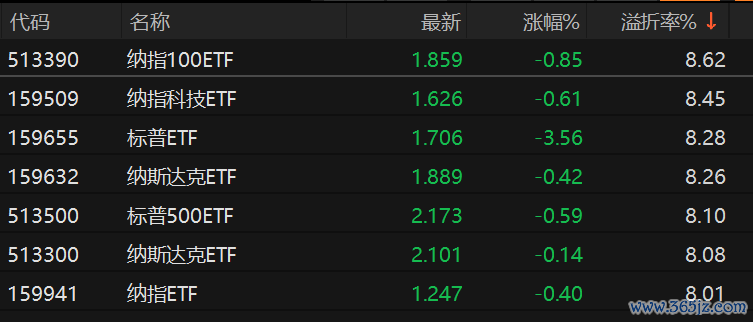 除了上述ETF以外,Choice数据显示,截至1月10日,博时纳指100ETF、纳指科技ETF、华夏标普ETF、华安纳斯达克ETF、博时标普500ETF、广发纳指ETF等溢价率均超过8%。