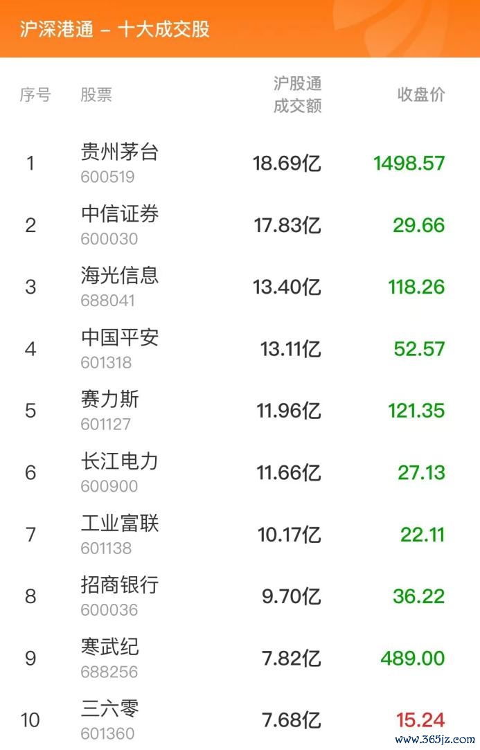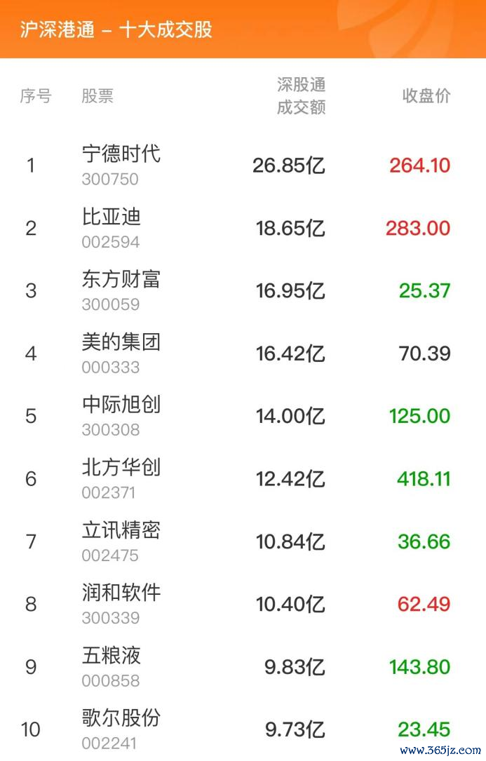 交易所公布的当日沪深港通十大成交股显示,贵州茅台、中信证券、海光信息位列沪股通前三,成交额分别为18.69、17.83、13.40亿元;宁德时代、比亚迪、东方财富位列深股通前三,财云股票配资成交额分别为26.85、18.65、16.95亿元。